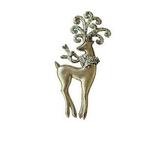 Gold Glitter Reindeer Deer Sparkly Ornament 7.25” Double sided