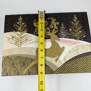Title: Gold Glitter Reindeer Magnetic Gift Box Winter Punch Studio Holiday 12.5x9x3.5