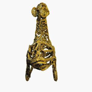 Elegant gold glitter wire reindeer for festive home decor. Adds a touch of sparkle to your holiday decorations.