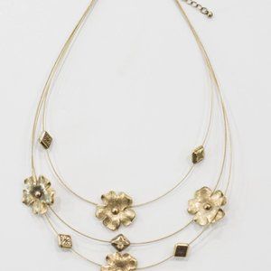 This is a faux gold necklace with three layers. It has flowers and greek key charms. It is 16.5 inches long (shortest layer). It is in excellent condition. Unbranded. Thanks for shopping my closet!