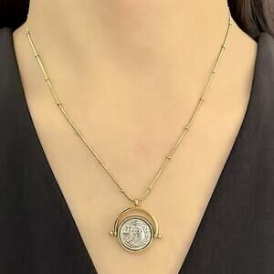 Gold plated Greek Mythology Zeus Hercules Signet Ring with matching necklace is a stainless steel, double-sided disc ring featuring Greek Gods mythology coin designs. This unisex piece makes a unique and thoughtful gift, blending ancient charm with modern style.coin pendant necklace, chain link. Flip coin ring. Pieces can purchase separately in different listing.