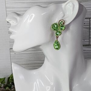 Gold Green Glam Crystal Glass Teardrop Earrings