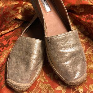Beautiful Gold Fabric and Soft Leather Flats. Worn twice.