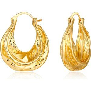Add a bold yet timeless touch to your jewelry collection with these unique hammered hoop earrings. The twisted silhouette with a textured finish reflects the light beautifully, giving your look depth and sophistication.