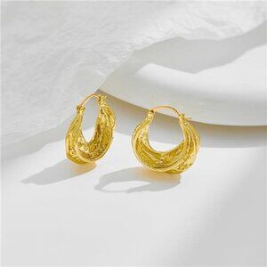 Gold Hammered Hoop Earrings – Textured Twisted Design