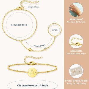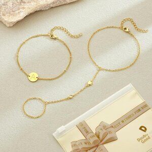 Features: This delicate hand chain bracelet features a layered design with a dainty chain ring adorned with a heart and cubic zirconia, plus a customizable initial charm. The smooth, comfortable fit wraps from wrist to finger, ideal for stacking or wearing solo for subtle elegance. Crafted from high-quality 18K gold-plated copper, it's hypoallergenic and tarnish-resistant for all-day wear.