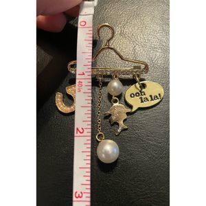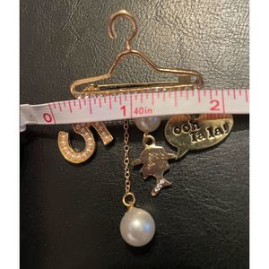 So cute! A 5, a silhouette, a pearl, and Ooh La La! hang from this bling clothes hanger. Gold hardware. See pics for measurements.