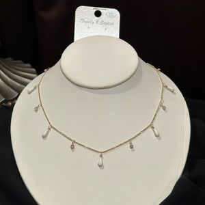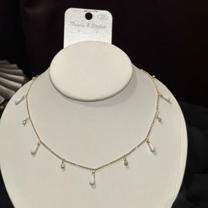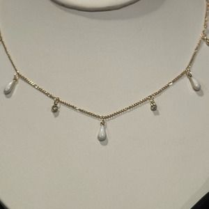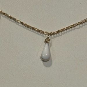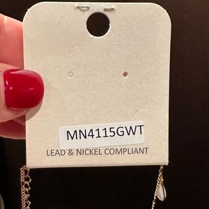 Gold Hardware Faux Opal Rain Drop & Faux Crystal Charm Necklace, NWT