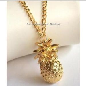 Gold Hawaiian Pineapple Necklace Pendant 26" XLong