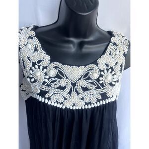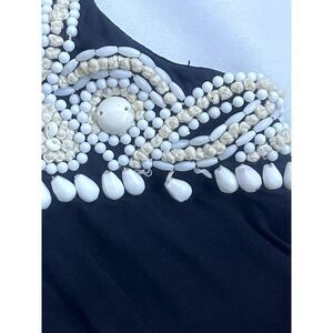 Gold Hawk 100% Silk Mini Tunic Dress Size XS Beaded Black Cream Classy Coastal