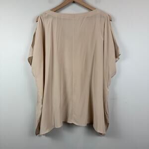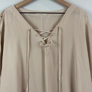 Gold Hawk 100% Silk Top Women's Large Beige Cold Shoulder Lace-Up Blouse Neutral
