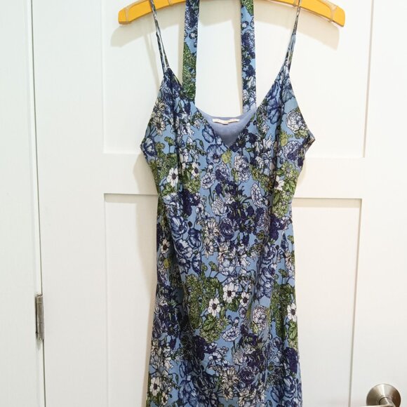 Gold Hawk Lavender Floral Silk Slip Dress with Bottom Lace and Matching Tie Belt. In excellent condition as new & unused. Sized a M but can fit a L this beautiful floral slip dress has adjustable straps, 3/4 lining and a beautiful lace bottom as shown. Comes with a long matching tie Belt. No material content tag.
