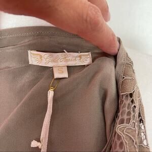 Gold Hawk Slip Dress Silk Taupe Spaghetti Straps Lace Ruffle Hem Pockets S NEW