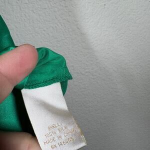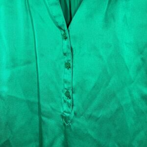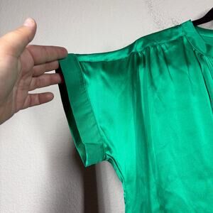 Gold Hawk XS Popover Shirt Blouse Green Silk Satin Split Neck Short Sleeves