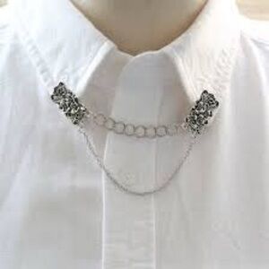 New without tags, never worn. Light gold metal. Last 2 pictures are just to show how to wear it, not pictures of the actual item. Approximately 6” in length (clip to clip).
