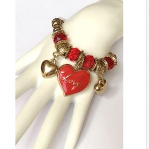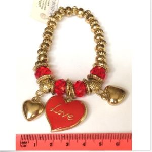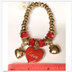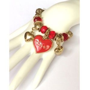 Gold Heart Charm Bracelet Red Enamel LOVE Chunky