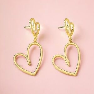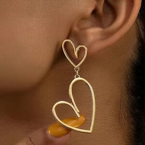 Gold Double Love Heart Drop Dangle Earrings. Gold metal heart shaped cutout earrings. Easy to dress up or wear casually. New. Bundle to save! Great gift for yourself or friend.