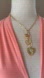 Elegant gold heart pendant necklace with sparkling accents. Perfect for adding a touch of glamour to any outfit.