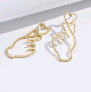 Gold Heart Hand Earrings