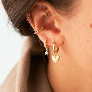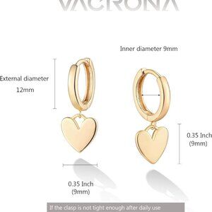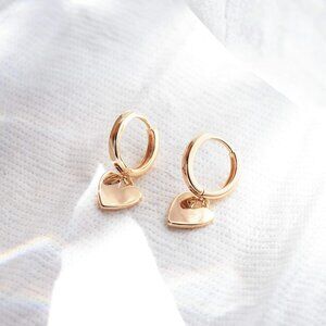 Heart Huggie Hoop Earrings Size: Hoop inner diameter is 10 mm, outer diameter is 13.2 mm, and thickness is 2 mm; pendant width is 9.1 mm, height is 9.8 mm, and thickness is 1.2 mm; crafted to ensure a comfortable fit Earrings : Featuring a delicate heart-shaped pendant, these heart dangle drop earrings evoke romance and charm, adding a touch of sweetness to any outfit; perfect for those who cherish subtle and heartfelt accessories