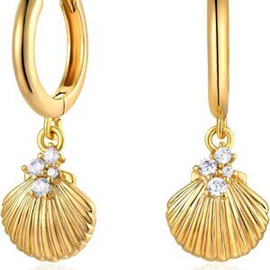 Drop Hoop Earring: Featuring a beautifully detailed scallop shell pendant, these dangle drop earrings bring a touch of the ocean's charm and elegance, perfect for those who love marine-inspired jewelry