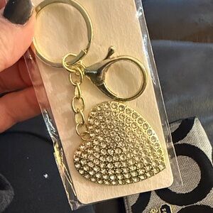 Add a touch of elegance to your accessories with this stunning gold heart keychain. Adorned with sparkling rhinestones, it's perfect for adding a bit of glamour to your everyday essentials.
