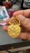 Elegant gold heart pendant adorned with sparkling crystals. Perfect for adding a touch of luxury to any outfit.