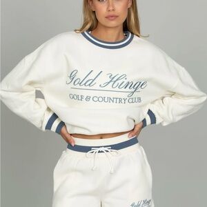Gold Hinge Women's Cream and Blue Crew Neck Sweatshirt Sz Large & short Sz XL