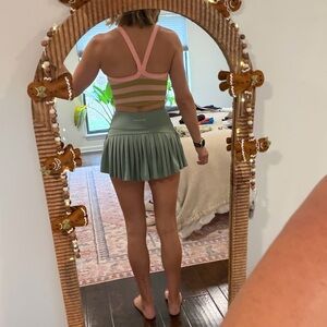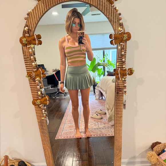 Elevate your wardrobe with this elegant sage mini skirt. Perfect for any occasion, this skirt offers a chic and versatile style.