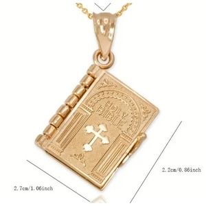 Gold Holy Bible Necklace Serenity Prayer Book Christian Catholic Birthday Gift