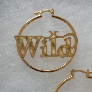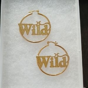 Embrace your bold side with these stunning gold hoop earrings featuring a 'Wild' design. Perfect for adding a touch of glamour to any outfit. stainless steel with gold plate.