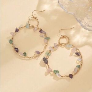 New , Elegant gold hoop earrings adorned with multicolor stones. Perfect for adding a touch of color to any outfit. lightweight