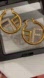 Elegant gold hoop earrings featuring crystal accents. Perfect for adding a touch of sparkle to any outfit. Beautiful sparkling F crystal earrings nice size. New in box. Gold plated