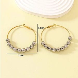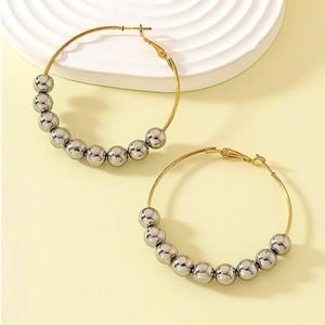 Gold Plated sterling silver hoops. Two tone gold hoop silver ball beaded oversized hoop earrings.