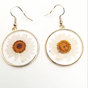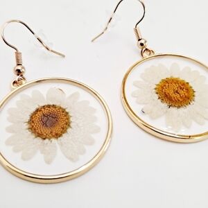 Gold Hoop pressed Flower Earrings Dangle Boho Daisy resin 💖2/$30