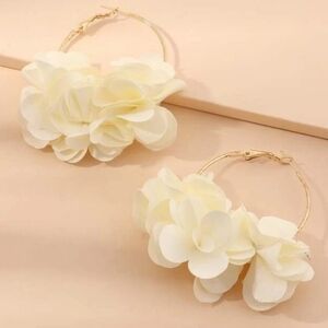 Gold Hoop statement earrings flower ivory Petals wedding fabric 💖2/$30