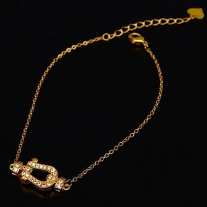 18k gold plated zircon horseshoe chain link bracelet in all sizes.