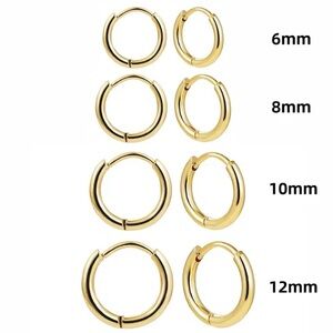 4Pairs Stainless Steel Solid Round Rings Huggies Earrings Set for Women Men Stackable 18K Gold Plated Tiny Ear Cartilage Hoops