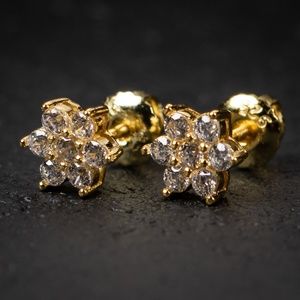 14K Gold Iced Snow Flake Flower Cluster Stud Earrings