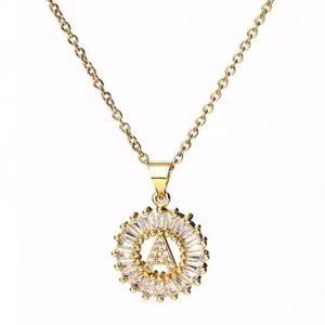 Gold Initial Crystal Sparkly Pendant Necklace A-Z