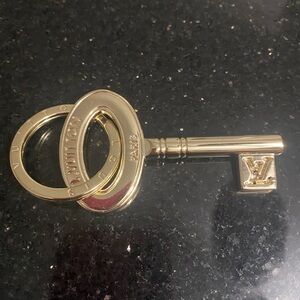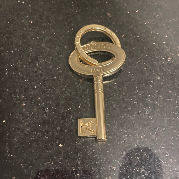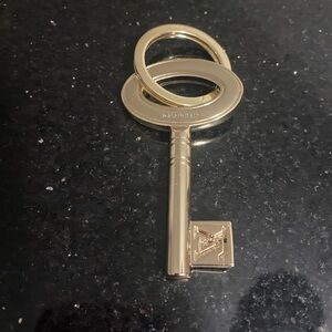Elegant gold key-shaped keychain with a stylish design.