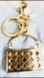 Elegant gold keychain featuring a stylish purse charm. Perfect for adding a touch of luxury to your accessories. With a C in the middle