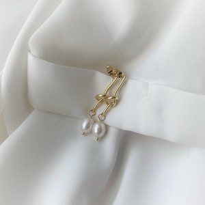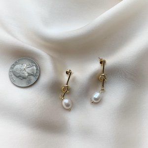 Gold Knot Geometric Freshwater Pearl earrings