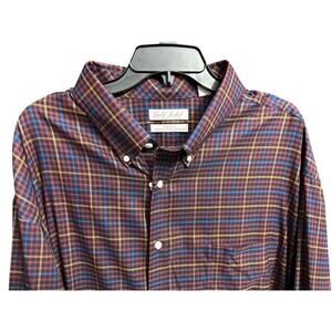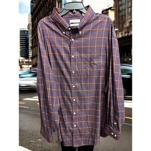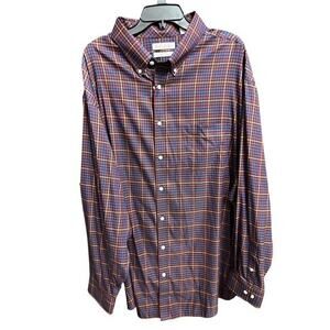 Gold Label 4XT Shirt Blue Red Orange Plaid Non-Iron Cotton Pocket Resists Fading