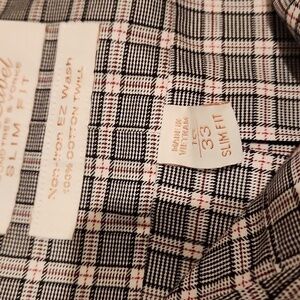 Men's Gold Label 100% Cotton dress shirt size 16/33 Slim Fit Square Pattern Black, Red and White like new no flaws or stains
