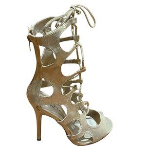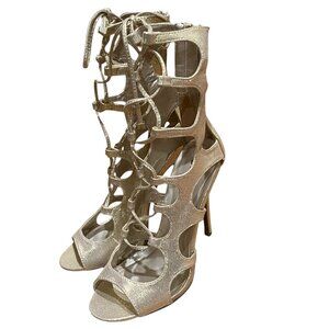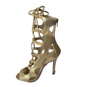 Gold Lace-Up Gladiator Stiletto Sandals – Metallic Cutout • Statement Heel