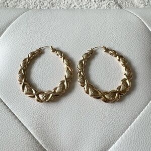 Gold Large Chunky Hoop Statement Geometric Earrings XO design New