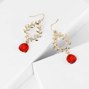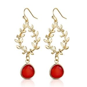 Elegant Gold Laurel Wreath Red Crystal Earrings