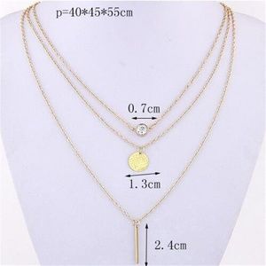 Gold Layered Chain Crystal Coin Bar Necklace