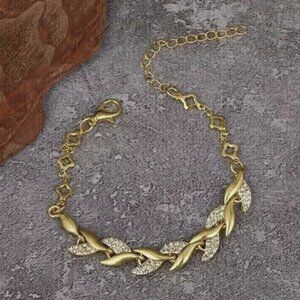 Gold Leaf Bracelet: An elegant bracelet featuring leaf-shaped motifs in gold, accented with sparkling crystals. Perfect for adding a touch of nature-inspired sophistication to your outfit